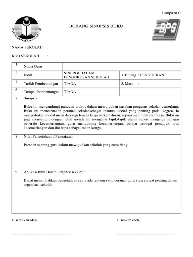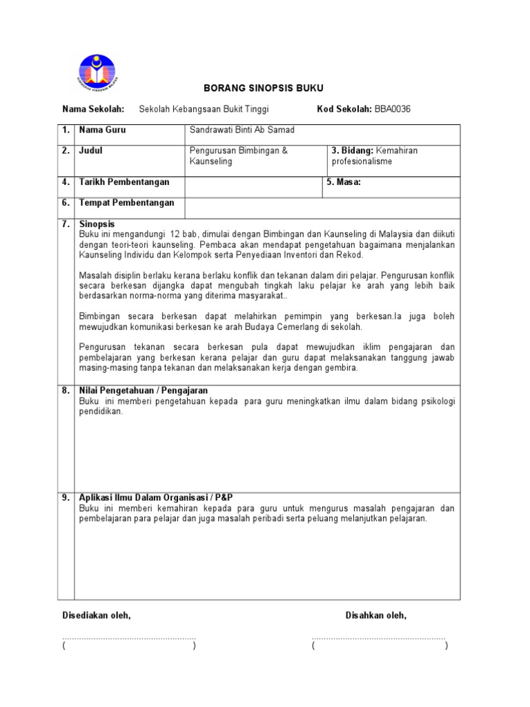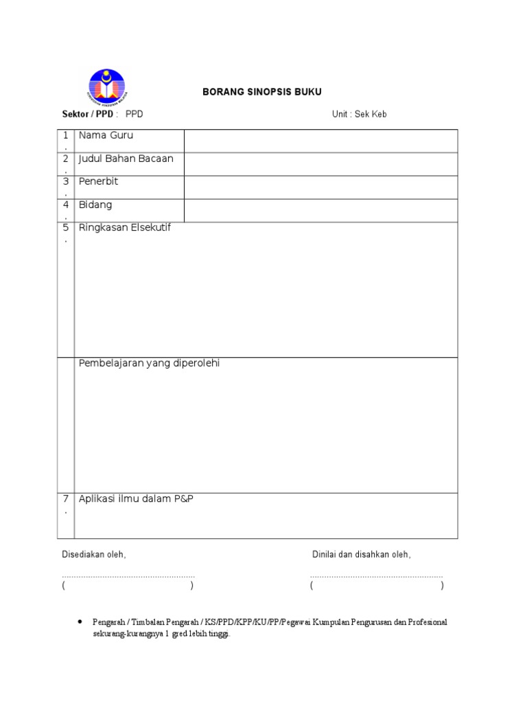 Borang Sinopsis Buku Doc Borang Kosong Pdf